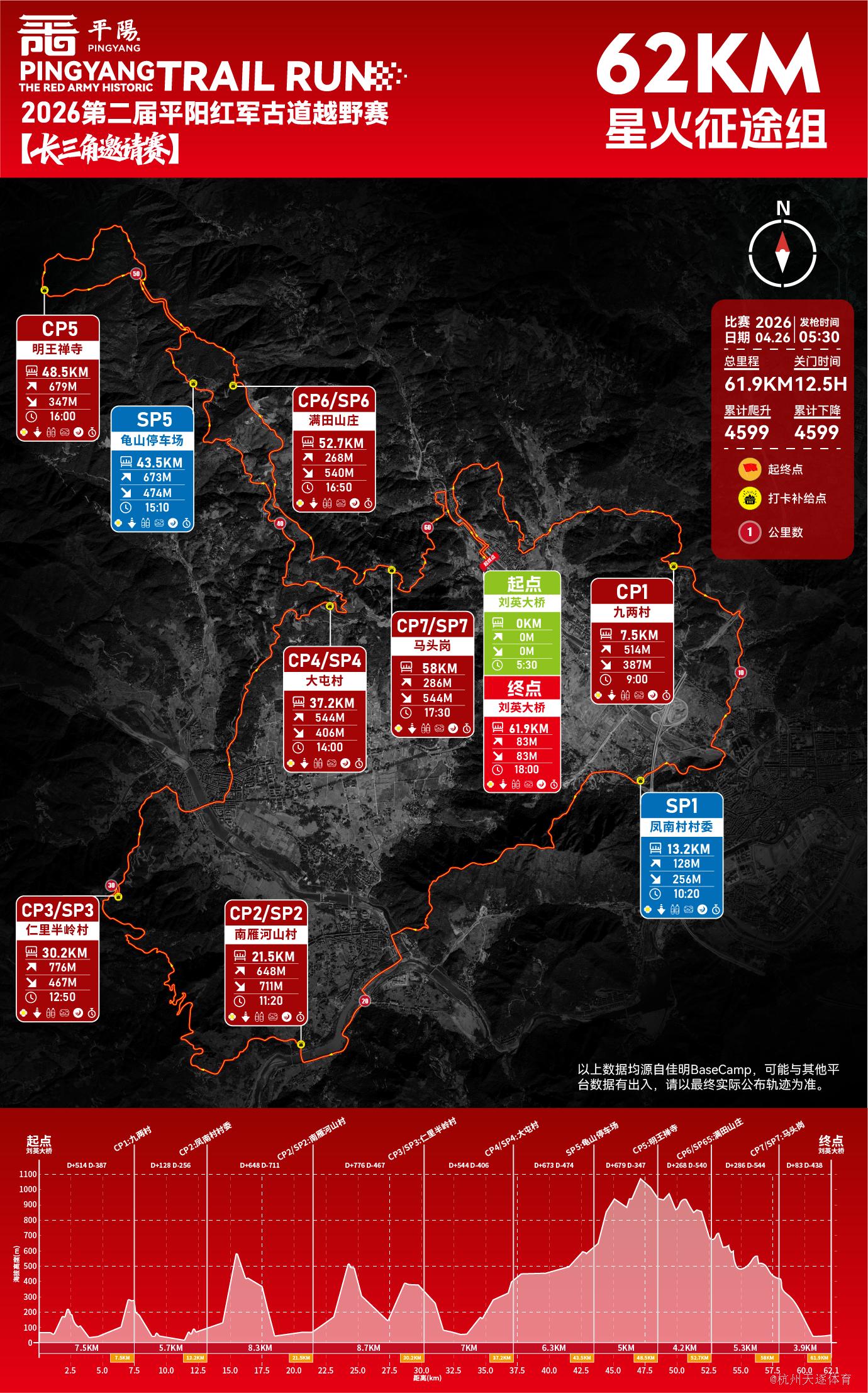 组别设置:5km薪火传承 /43km烽火挑战 /62km星火征途